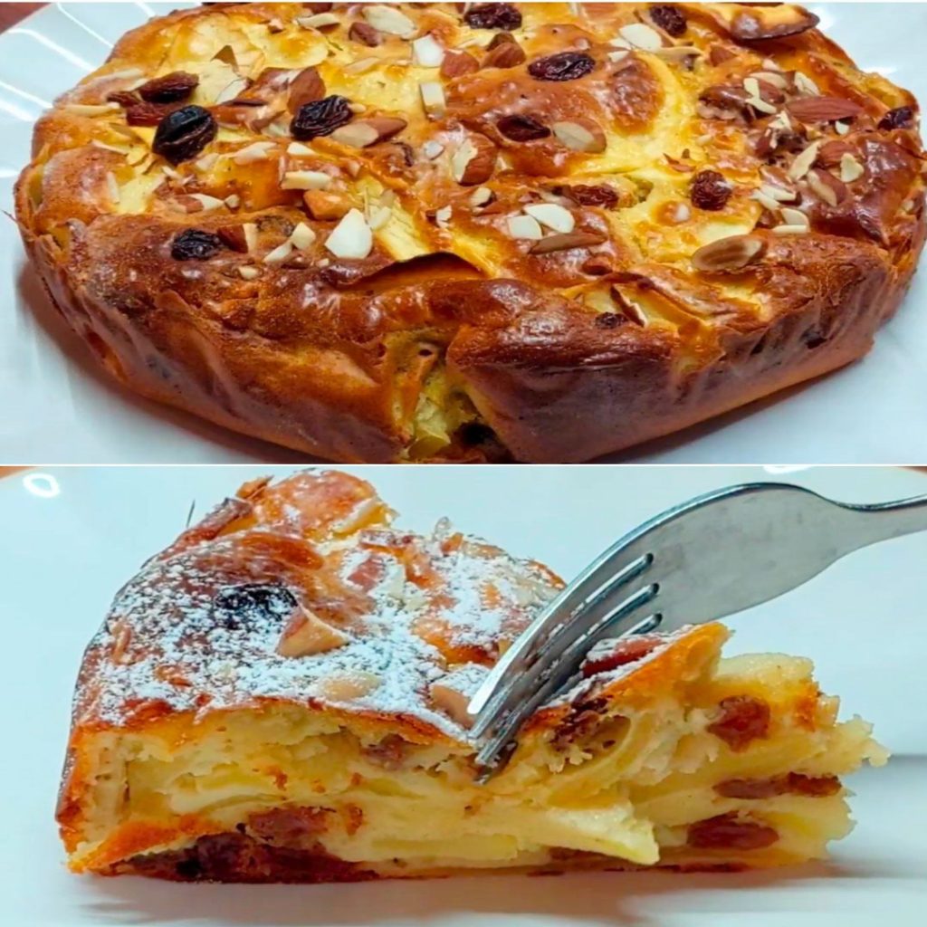Ingrédients: 2 œufs 3 grosses pommes 1 citron 50 g d’huile de tournesol 150 g de yaourt grec 1 cuillère à soupe de miel 90 g de farine 8 g de levure 80 g de raisins secs 8 amandes la suite page suivant